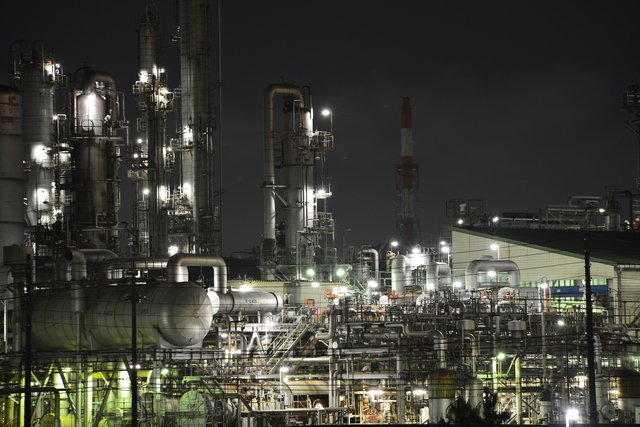 洗練された機能美を有する強大なコンビナートは、昼間は力強い威容を、夜間は幻想的な輝きをもって人々を魅了します。